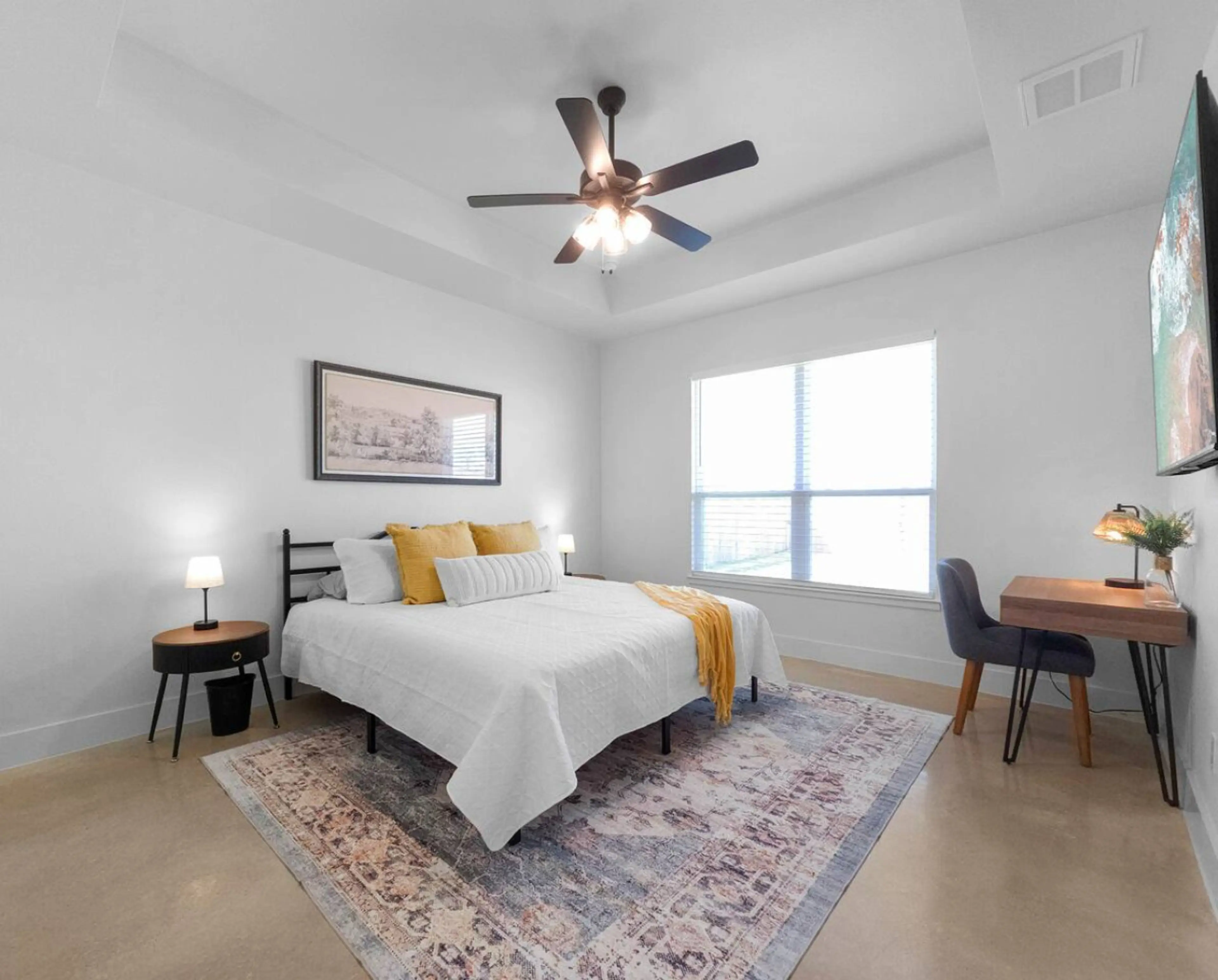 Relax with the whole family at this peaceful place to stay. Stylish, fully furnished home in a central location with easy access to shopping, dining, and highways. Three-bedroom 2-bath home also features a dedicated office space, fully stocked kitchen, and garage parking. Perfect for families, profe...