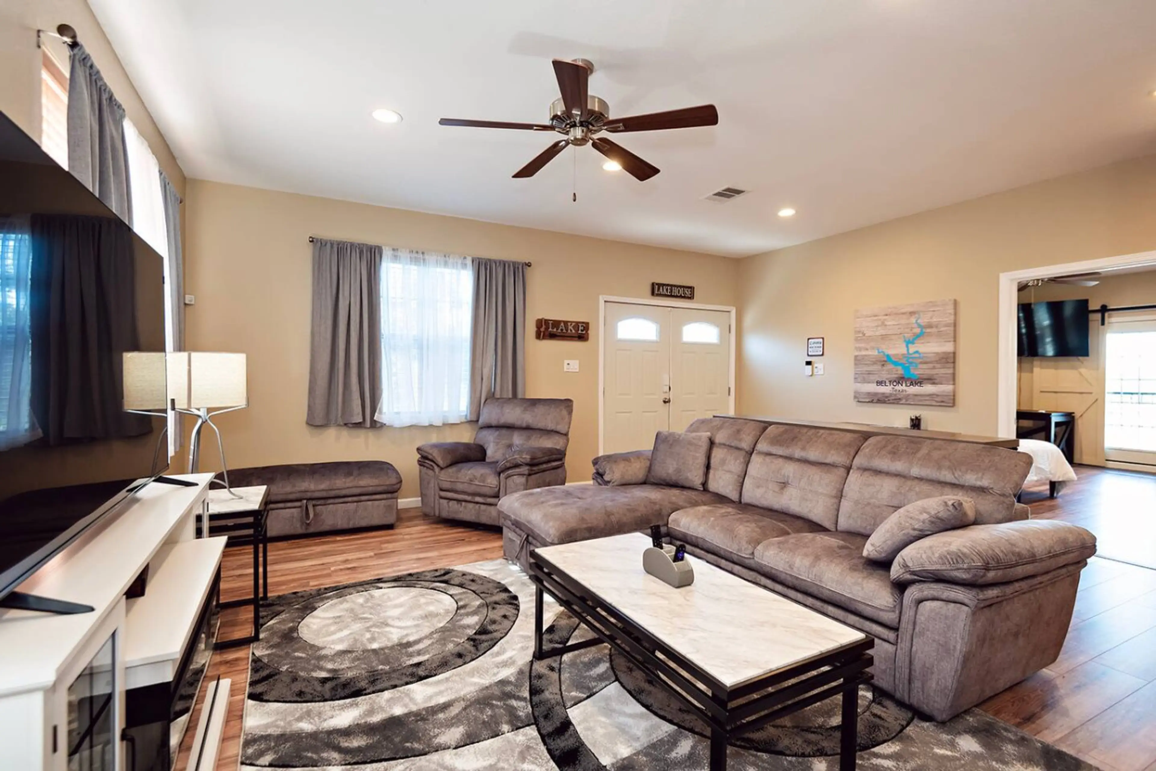 Welcome to The Lively Lake House! Get ready for good vibes and lake life fun! This spacious home sleeps 8 and has everything you need—fully equipped kitchen, comfy bedrooms with TVs, and cozy decor that feels like home. Hang out in the huge yard, roast marshmallows by the fire pit, or fire up the ba...